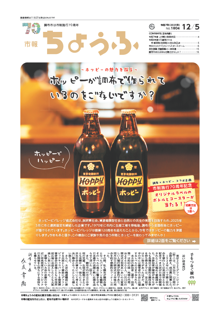 調布市が発行する「市報ちょうふ」12月5日号に、ホッピーの特集が掲載されました。
